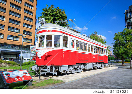 岐阜市 岐阜駅前広場の名鉄モ510形保存車両と電停跡地