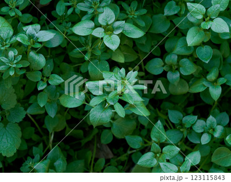 自然 植物 ホソバノヨツバムグラ、地面の柔らかい湿地に群生しています