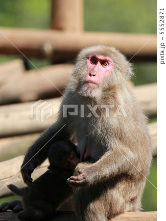 ヤクザルの親子 授乳中 世界自然遺産屋久島(春
