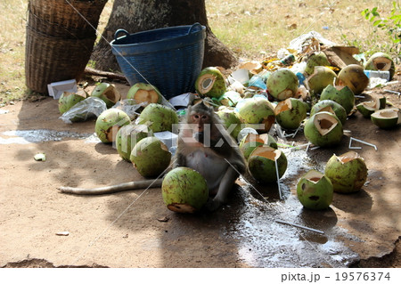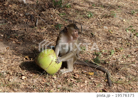 アンコールワット お土産物屋 やしを食べるおさるさん