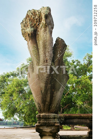 世界遺産アンコールワットは、アンコールトムのナーガの石像