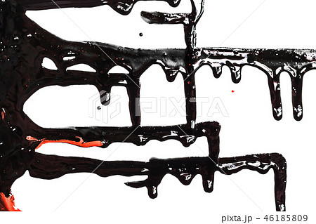 Black paint is dripping down a white background, creating an abstract and artistic visual effect with its irregular shapes and flowing movement
