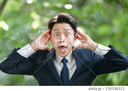 ビジネス 男性 新緑 驚く
