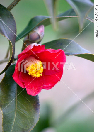 ツバキ 藪椿 やぶつばき 赤い花びら 一輪