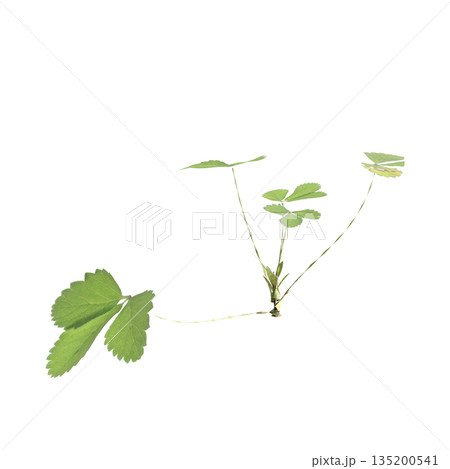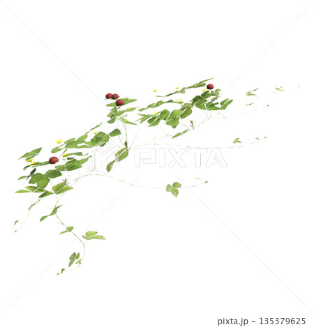 Multiple Duchesnea indica grass plants 3d illustration on transparent background
