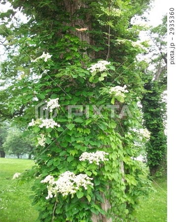 ツルアジサイは立木に巻きつき高くまで伸びます