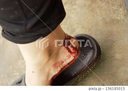 山ヒルに噛まれた傷からの流血 ネパール