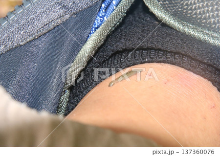 靴にくっついたヤマビル