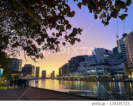 オーストラリアのメルボルンのヤラ川の夕景