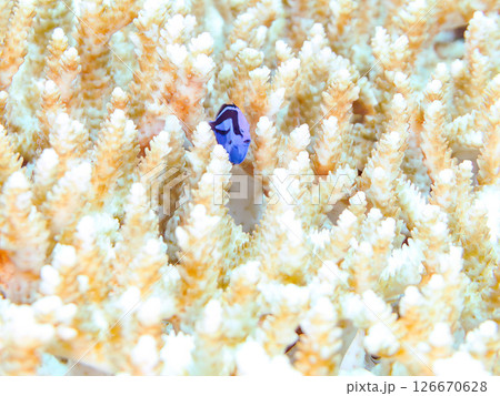 白化現象の美しいテーブルサンゴと可愛いナンヨウハギの幼魚他ヒリゾ浜中木南伊豆町伊豆半島静岡県2024