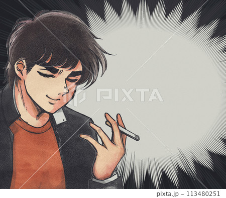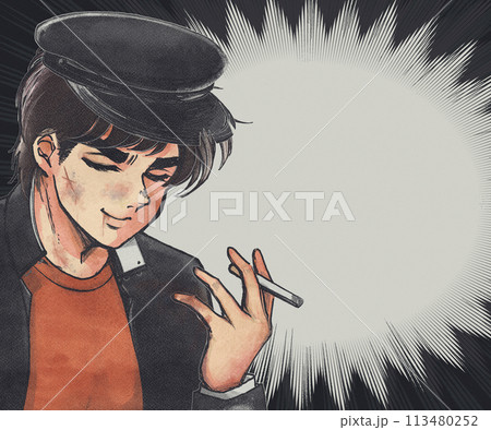 劇画風・タバコを吸う昭和の不良学生のイラスト