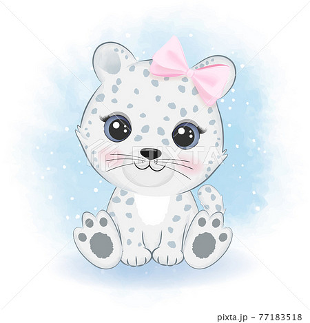 Cute snow leopard cartoon arctic animal watercolor illustration