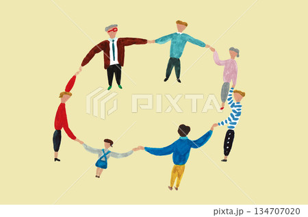 手描きイラスト 輪になって手をつなぐ男女と子供