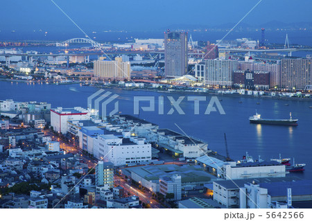 大阪府、ユニバーサルシティと明石海峡大橋方面の風景