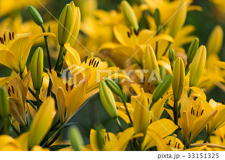 夏の花壇 カラフルなスカシユリの花びら
