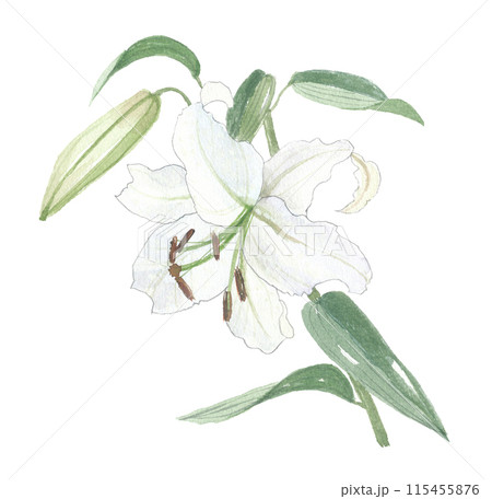 水彩で描いたオニユリ(鬼百合)とビャクゴウ(百合)