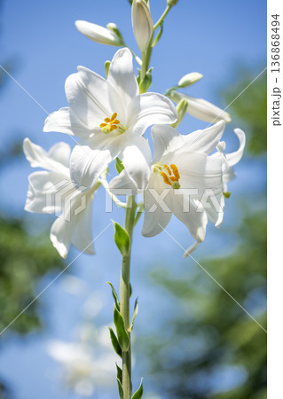 白いユリの花 ユリ 白色 花 初夏 7月 イメージ