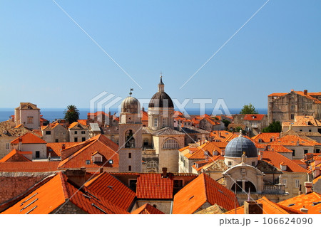 クロアチアの世界文化遺産、アドリア海の真珠ドブロブニク 城壁から望む旧市街の時計塔や教会のドーム