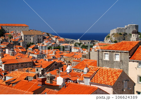 クロアチアの世界文化遺産、アドリア海の真珠ドブロブニク 城壁から望むオレンジの屋根が鮮やかな旧市街