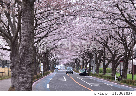 三鷹市・大沢グラウンド通りの桜並木と調布飛行場