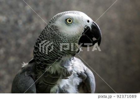 ヨウムの正面顔立ちマクロ画像【オウム目インコ科】