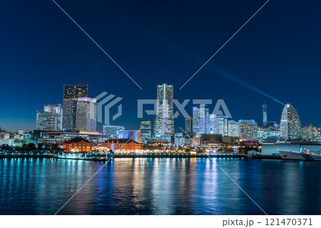 「神奈川県」大桟橋から見たみなとみらいの夜景 パノラマ