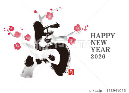 年賀状 デザイン 2026年 午年 年賀状用テンプレート 手書き和風筆イラスト入り