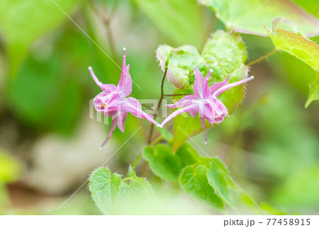 自然 植物 イカリソウ、不思議な姿の花ですが日本の野草です。花は春から初夏に咲きます