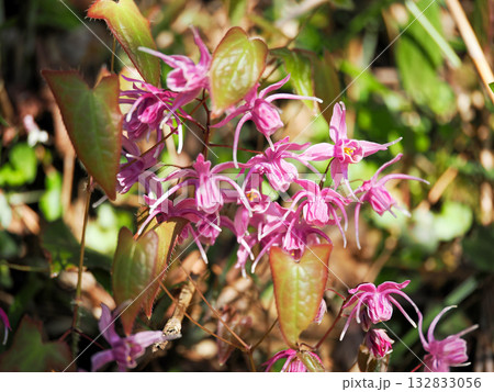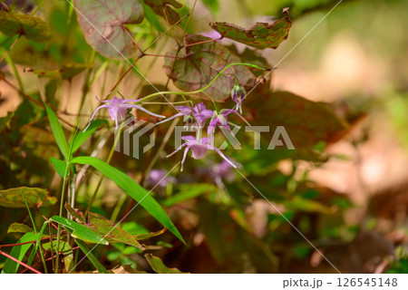 自然 植物 イカリソウ、山地や丘陵の林縁などに自生。山菜や生薬にもなるそうです