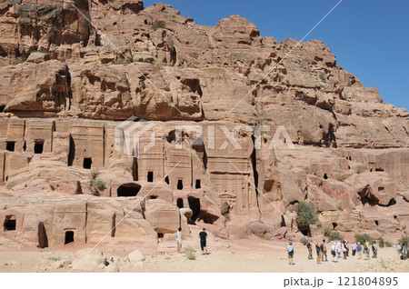 ヨルダン、ペトラ、ペトラ遺跡、岩壁を削った岩窟墓群