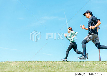 ランニングする男女(運動・走る)