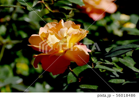 調布市の植物園に咲くオレンジと黄色のバラ ゴールドマリー(モダンローズ)