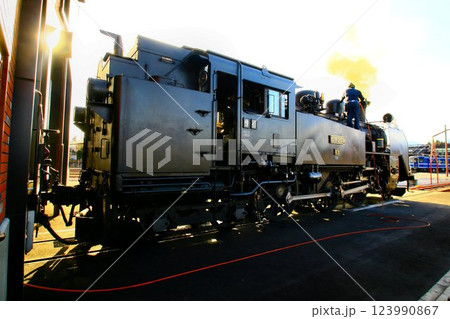 夕焼け空の機関区… 整備を受ける蒸気機関車C11