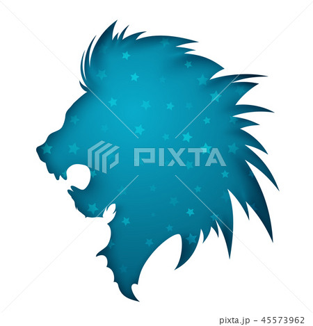 Paper lion ullustration. Blue star.