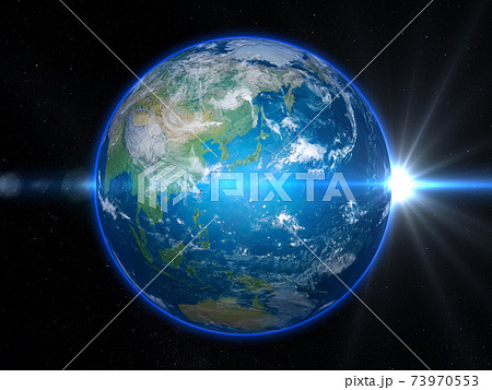 地球 日本列島を中心で日の出の光
