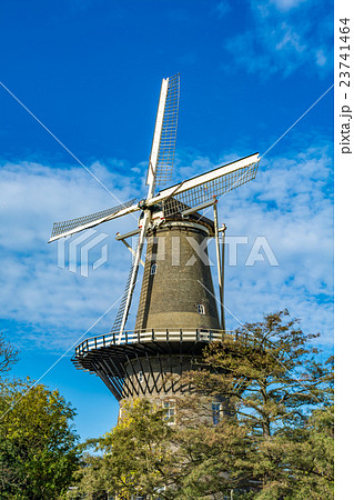 オランダ ライデンの風車と花