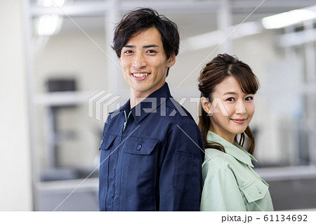 オフィスで背中合わせに立つ男女 ビジネスシーン