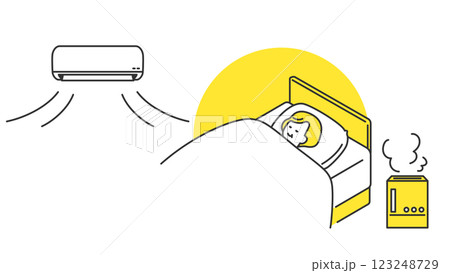 睡眠:加湿・空調付きでベッドで眠るシニア女性