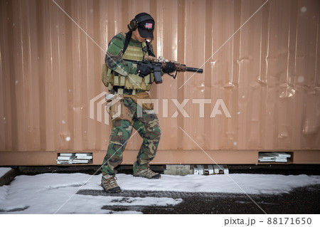 銃を持って狙いを定める軍人 soldier