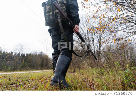 Hunter with a gun and a backpack