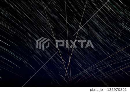川崎・羽田空港上空 夜景 星と飛行機の軌跡 ライブコンポジット