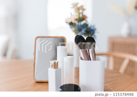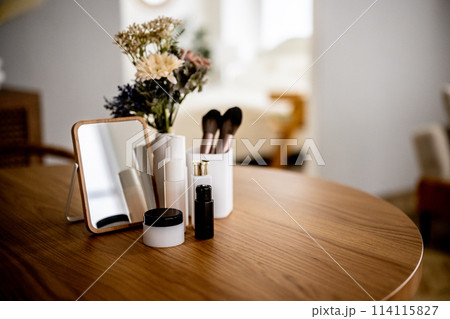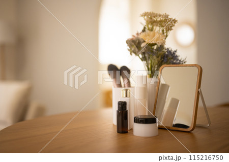 コスメアイテムが置かれたテーブル