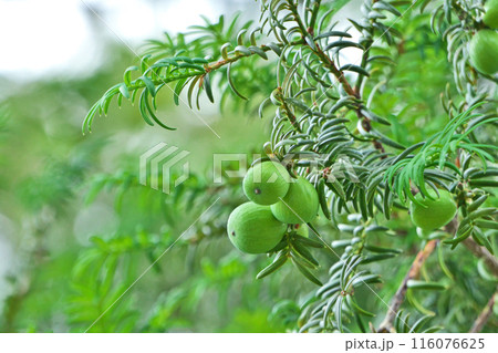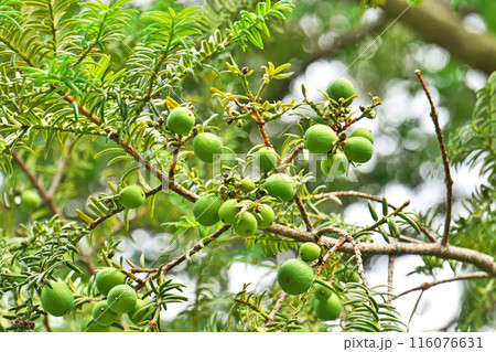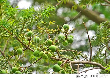 緑色のカヤの実(夏、六月)