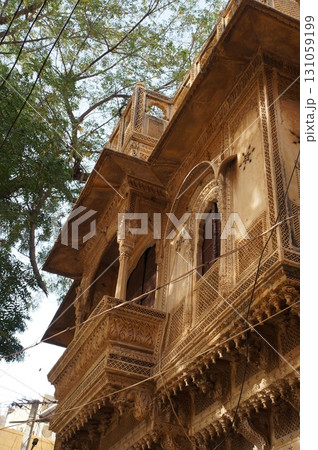 India, architectural complex of a haveli in Jaisalmer, view from a window looking outwards
