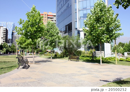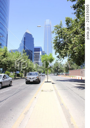 南米チリの首都サンチアゴの山の手、ラスコンデス地区エルゴルフのオフィス街と並木道