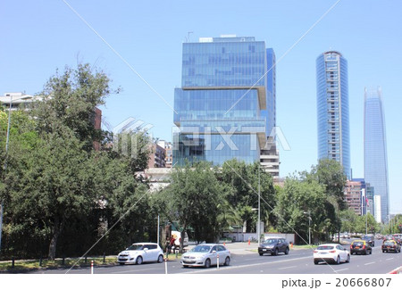 南米チリの首都サンチアゴの山の手ラスコンデス地区、オフィス街の街並み