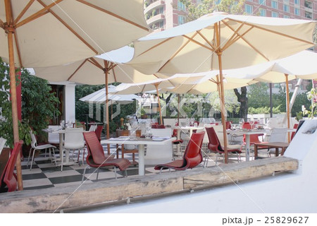 南米チリの首都サンチアゴの山の手、ラスコンデス地区エルゴルフのレストランのパティオ