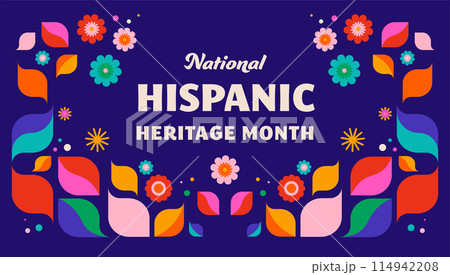 National hispanic heritage month celebration. Background, banner and card with flowers. Geometric