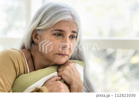 Frustrated desperate elderly Hispanic lady upset about loss, grief