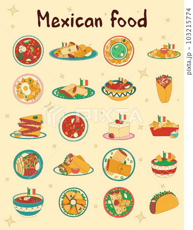 Set of Mexican traditional food. Vector illustration in hand drawn style